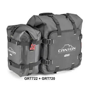 Givi GRT720 CANYON 50L este o pereche de genți laterale din textil, rezistente la apă, cu 25 + 25 litri. Concepute de GIVI, pentru motocicletele de off-road, sunt echipate cu sistemul de montare Monokey®. Genții au fost realizate cu o pasiune reală, design italian, idei tehnologice puternice și cu cunoștințe specifice despre materiale. Gențile laterale GRT720 Canyon, datorită buclelor laterale cu care sunt echipate, vă permit să modulați configurația bagajului în funcție de necesitățile de încărcare, de la scurte excursii de o zi pe motocicletă la călătorii mai lungi și mai solicitante, rezistând la ploi abundente și condiții extreme. Sunt, de asemenea, echipate cu cheie Security Lock, care poate fi unificată cu carcasa superioară și cu cutia de scule, dacă este necesar, folosind kiturile SL102-SL103-SL105.