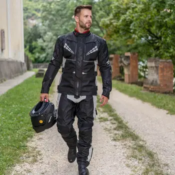 Geacă moto din textil SIXGEAR CHANNEL · Negru / Gri, cu membrană REISSA detașabilă, căptușeală termică detașabilă, ventilație amplă și protecții CE Level 2 T la umeri și coate.