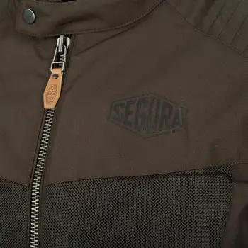 SEGURA DIKINSON, în culoarea maro, este o geacă moto de vară din textil, cu croială Body Fit, panouri Hard Mesh și protecții ALPHA detașabile la coate și umeri.