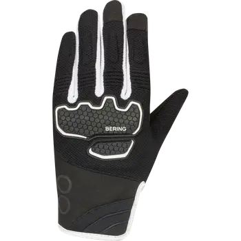 Mănușile moto de damă Bering Lady Breeze sunt un model de vară, omologat EN 13594:2015, cu protecții la articulații și ranforsare în palmă. Exteriorul din 3D Mesh, neopren, poliester și Amara, plus strângerea la încheietură și elementul reflectorizant, oferă confort pe vreme caldă. Culoare: Negru / Alb.