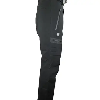 Au cusături termolipite, material stretch pe două direcții, articulații preformate, fermoare YKK impermeabile, aerisire laterală și protecție Microvalterm 80 g/mp.